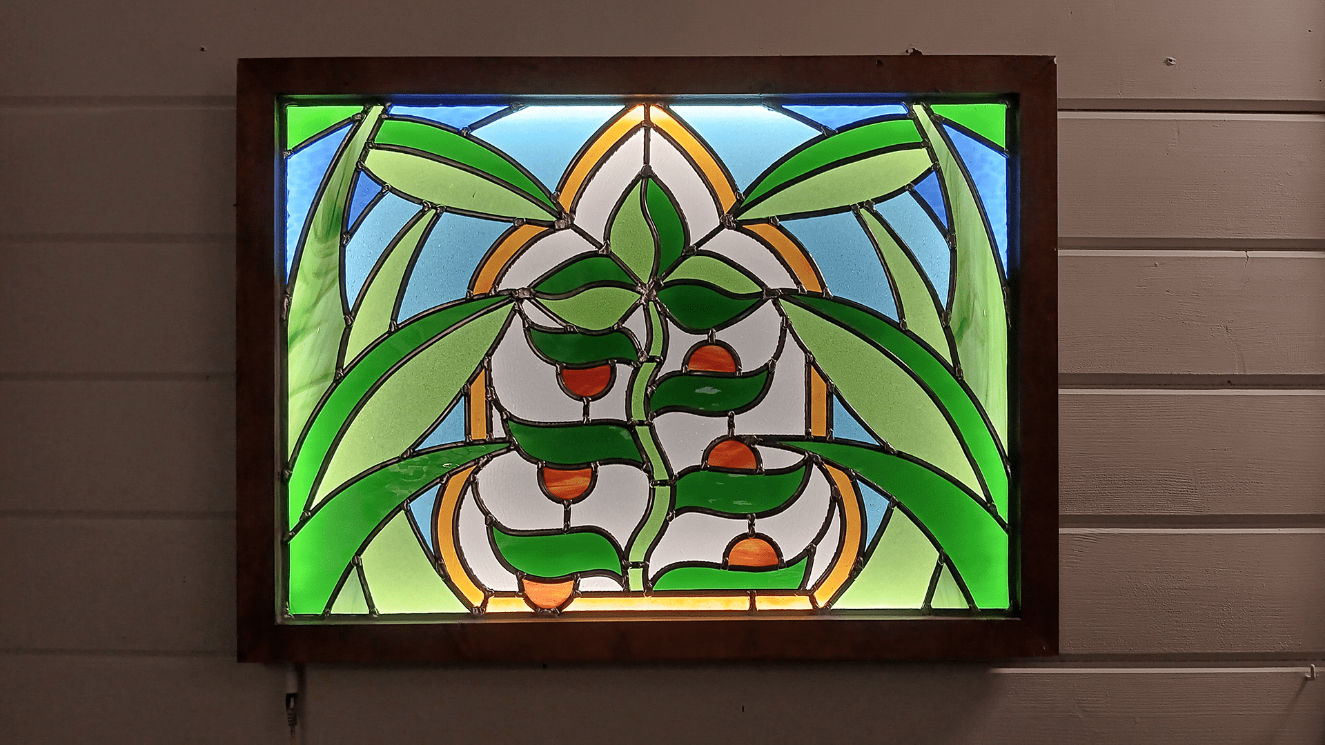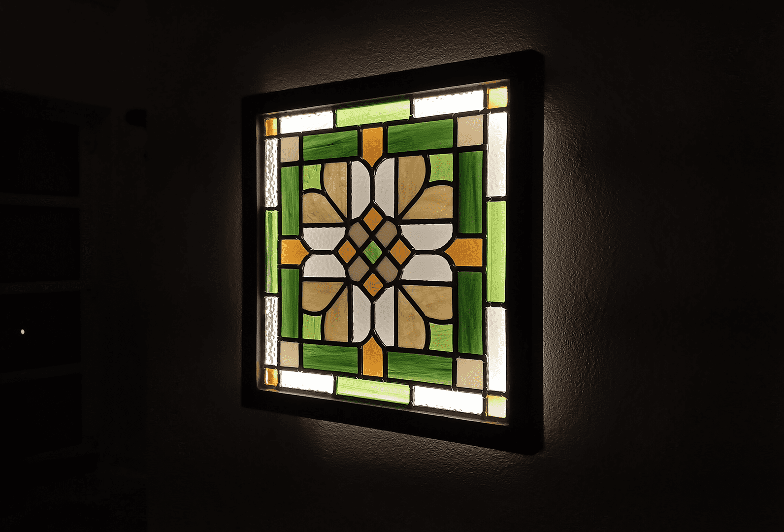 I also create decorative stained-glass windows, lightboxes, lamps, etc. Here are some of the pieces I designed and put together.